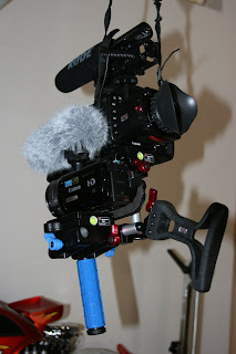 As most of you know already I am heavily into filming video. I am asked a lot about my cameras and equipment. As of now I have three different rig set ups. Depending what I am shooting and how, my need for different rigs are crucial. This one happens to be a run n gun set up that allows me to mount a 1080I Canon vixia hfs100 and the Canon 7D that is capable of stills and shooting full 1080p. But some of you are saying to yourselves, “why do that when the 7d can do it all?” Well unfortunately the 7D can’t stay in focus all the time and I need that instant focus when moving around. That is why I mounted the Vixia. I can cross shoot what ever I want and if need be, concentrate on a cinematic shot with my 7D. It’s a win – win situation for me.