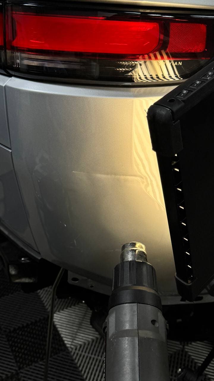 That’s what it took to erase a sharp, creased impact from a Rivian R1S rear quarter panel (using paintless dent removal). Damage that Rivian certified body shops quoted at $20,000 plus with a 2.5 week timeline.